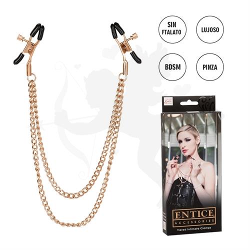 prensa de pezones con doble cadena, son adornos de diseñador con un estilo sensual. Este juego de 2 prensas de diseñador multiusos cuenta con una cadena escalonada brillante de alta calidad para mayor atracti